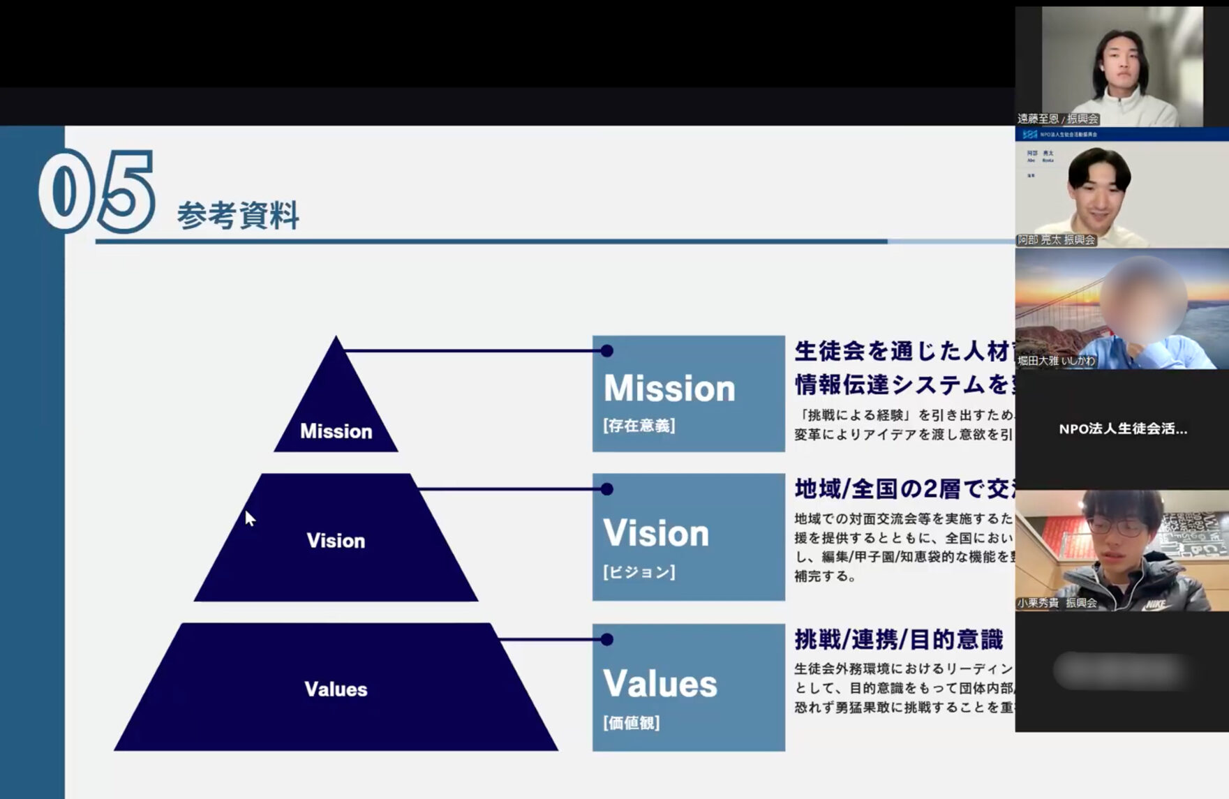 2026年2月6日(金)、弊会主催の合同研修会をオンラインにて実施いたしました。本研修会は、生徒会を通じた人材育成の速度を最大化させることを目的とし、弊会幹部職員及び弊会団体支援担当職員、並びに弊会が伴走支援を行う関係団体の幹部に対し実施するものであり、第1回である今回の研修会では、組織運営にあたり必要な目的意識や目標設定等のあり方に関して扱いました。